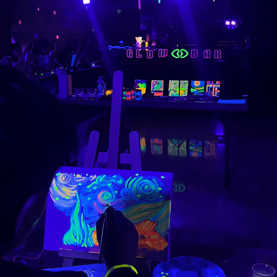 Pinta tu propio cuadro con pintura neón que brilla bajo luz UV en una experiencia artística divertida, guiada y totalmente diferente.